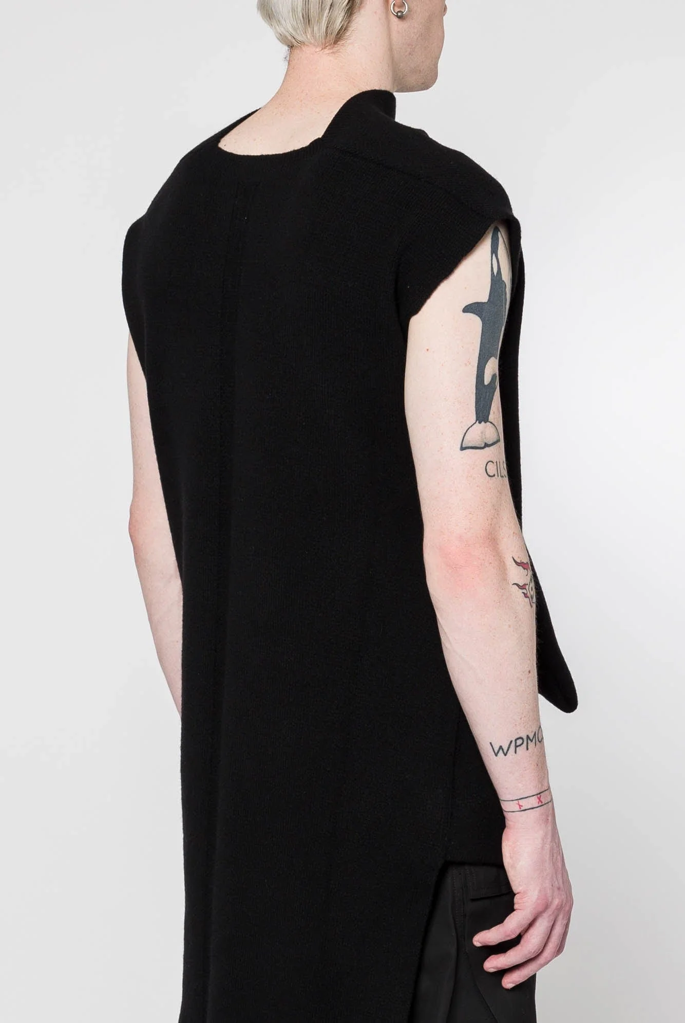 Rick Owens' Fall/Winter 2024 collection includes the Jumbo Babel top in black. This one-size knitted garment features an unconventional silhouette and distinctive textures, characteristic of Owens' avant-garde approach. The top combines innovative design with high-quality materials, reflecting the designer's signature blend of elegance and edginess.