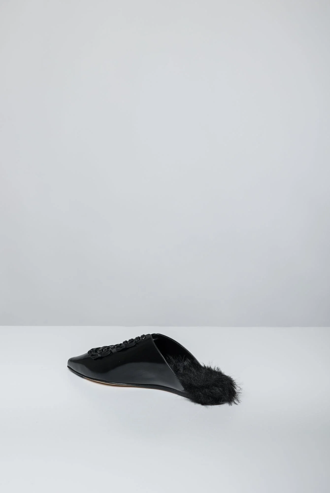 Simone Rocha Faux Fur Point Toe Lace Up Slipper