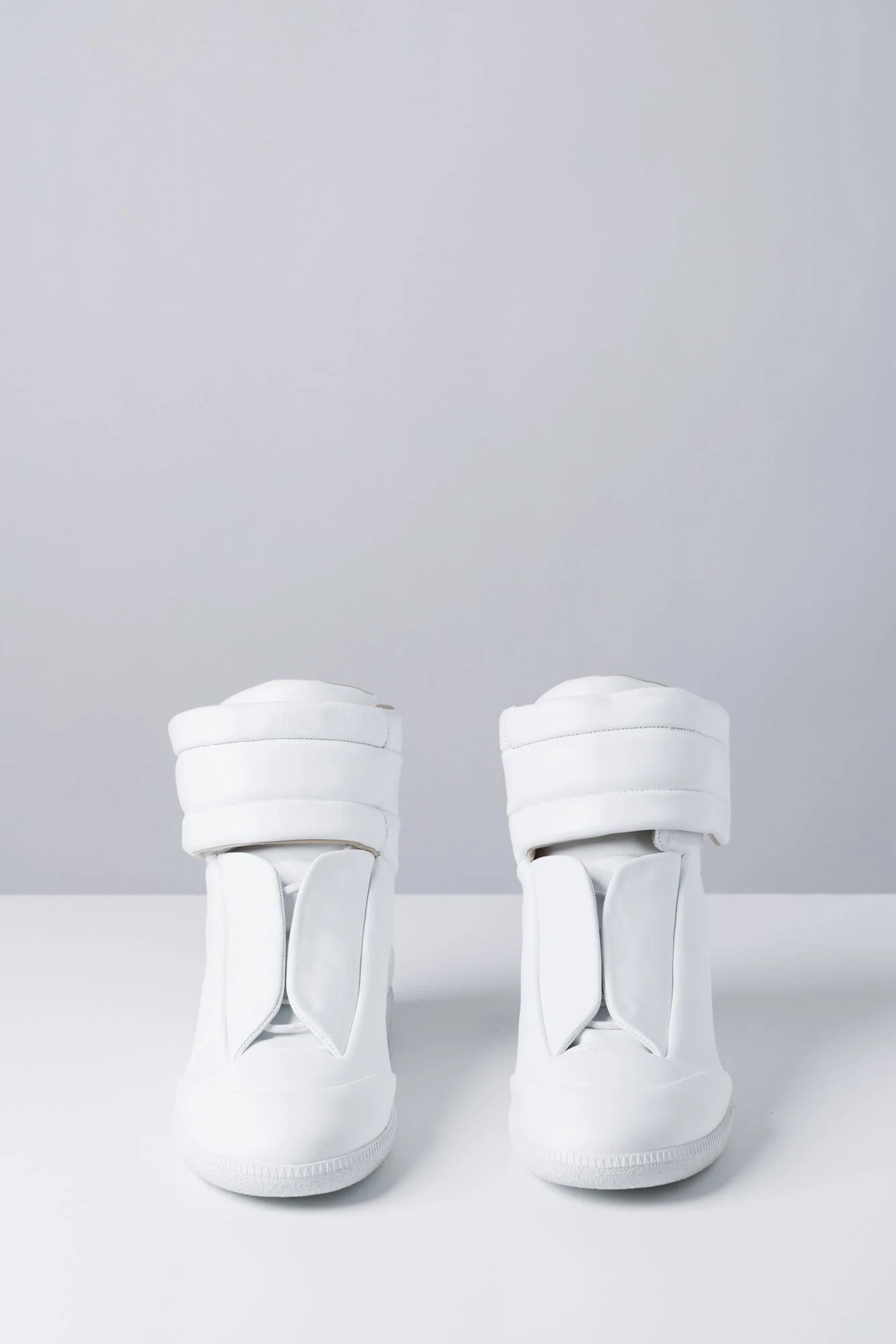 Maison Margiela's Fall/Winter 2025 collection presents these mid-top sneakers made in a soft calfskin with a seamless construction and concealed fastening. Designed with a hidden strap that folds across the tongue for a smooth, uniform surface. Finished with a tonal sole and the signature single white stitch at the back.