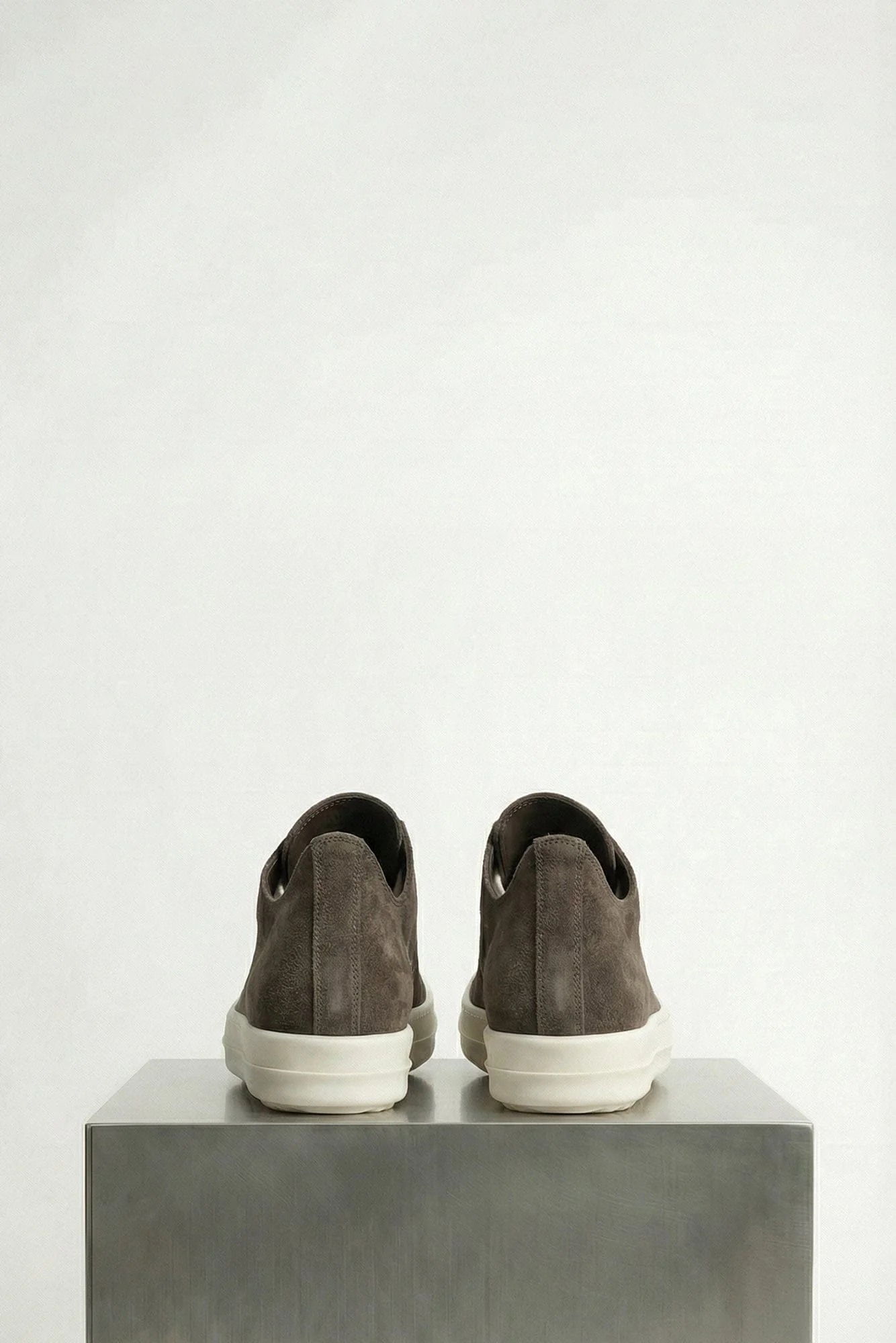Rick Owens Spring/Summer 2026 collection presents these low-top sneakers in grey suede with a soft, brushed finish and a rounded toe. Designed with leather lining, leather insole, and a rubber sole for structure and grip.